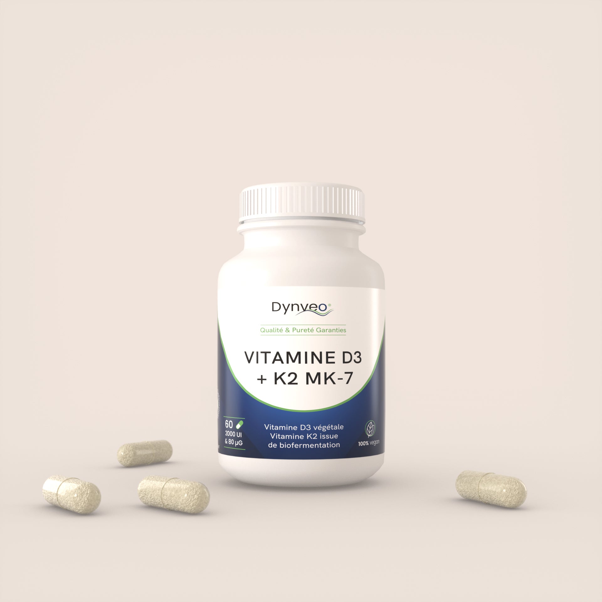 - 1 boîte de vitamine D3-K2 (2000 UI) | Dynveo (60 gélules)